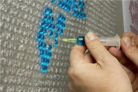 許多女孩子喜歡在家玩十字繡,而今天我們就給大家?guī)硪粋€另類的十字繡,用到的東西就是氣泡膜,以前那些“暴殄天物”的MM們可得上心了。氣泡膜新玩法,不但可以捏著玩,還可以扎著玩,需要準備的東西也很簡單,就是顏料和注射器,而且它可比一針針繡出來的十字繡,簡單多了。
